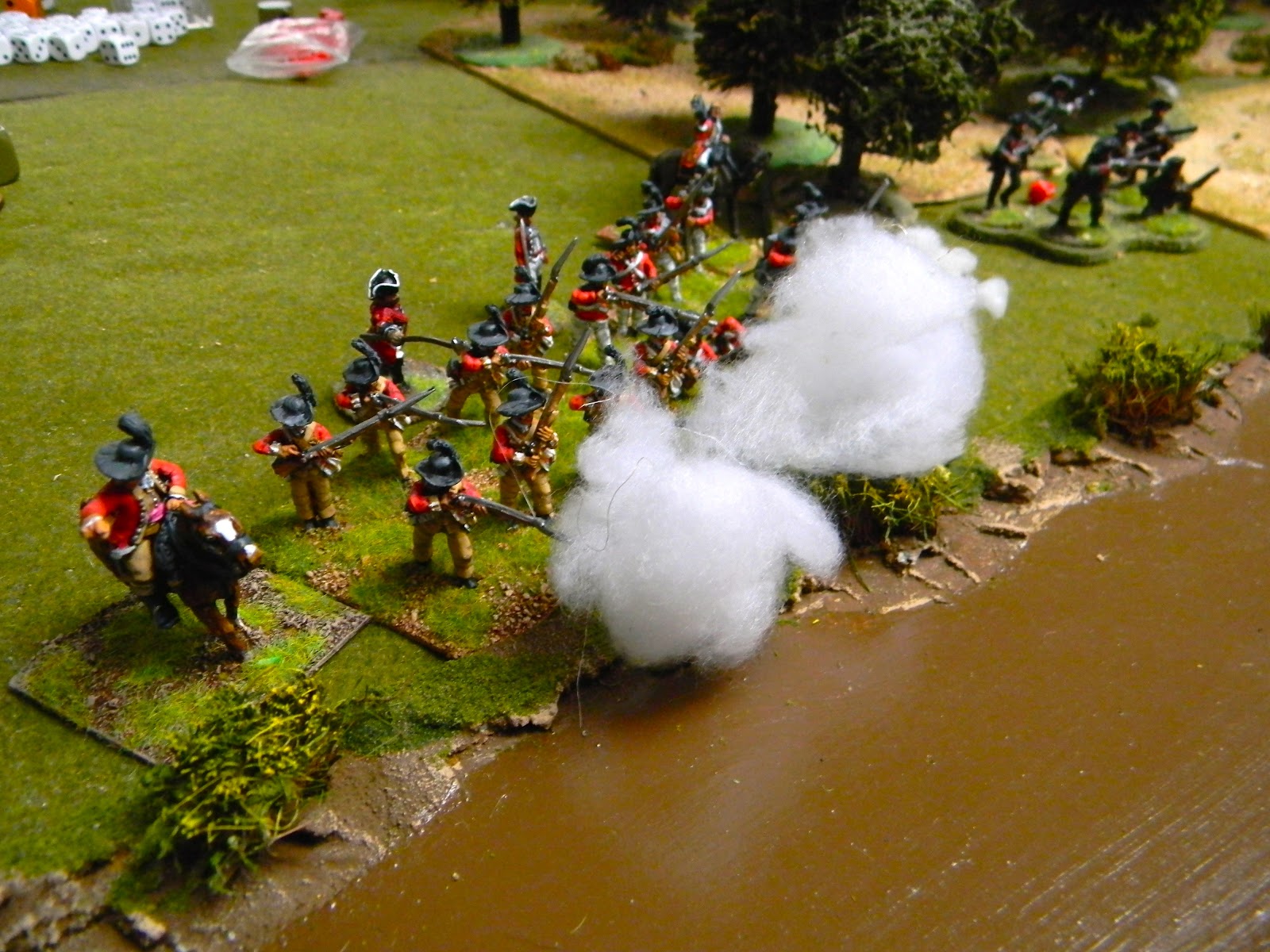 The American musketry has been devastating - a big gap has appeared in the British line as the Lights have gone and the Hessians struggling