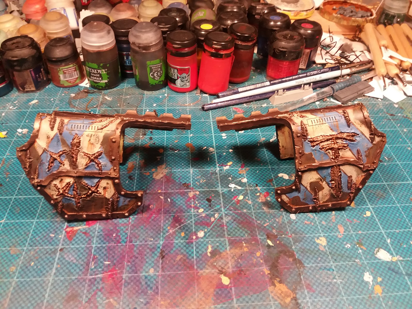 Finally, this week I finished the last pieces for Fenrir, the armour plating's for the arm weapons. I am really happy with how the extensions worked. But the next time I do something like this I will cut away the bottom of the armour trim so that I get a single plate rather than the divider at the middle.